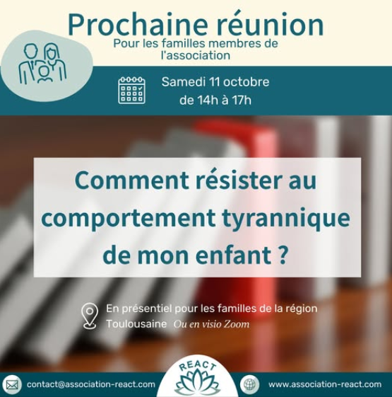 ✨ La prochaine réunion pour les familles membres de l'association aura lieu le samedi 11 octobre de 14h à 17h